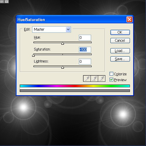 8. Press Ctrl+U (Hue/Saturation), and apply these settings: