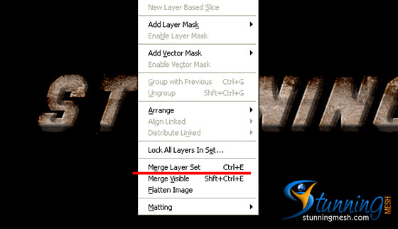 Create a new layer set and name it Rusted Holes. Make all your text layers inside the layer set so you can merge it later.
